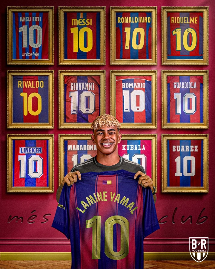 24直播网7月17日电据官方消息,亚马尔下赛季将首发踢巴萨10号。巴萨10号前任老板法蒂租借离队后,亚马尔接手了这个意义重大的号码。在巴萨历史上,梅西、小罗、马拉多纳等传奇人物都曾穿过这个号码。
